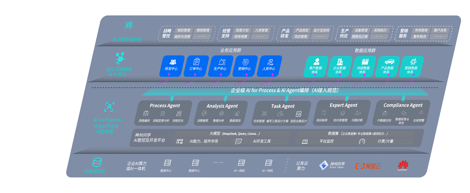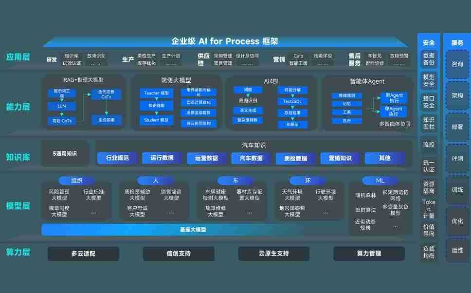 端到端的一站式AI工作空间深度融合了从企业战略规划到日常经营的全流程业务板块,,定向解决车企内部领域多、、部门多、、链条长、、场景碎片化等难题,,支持车企快速构建以AI为核心的生产力写作体系,,实现任务执行与AI能力的无缝集成与交互